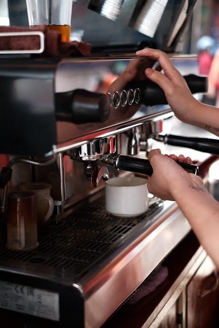 Familiarize yourself with the machine’s various parts – portafilter, drip tray, water reservoir – as detailed in the components overview. This initial preparation, much like planning for retirement, lays the foundation for a smooth and enjoyable experience. A quick rinse of removable parts with warm water is also recommended.