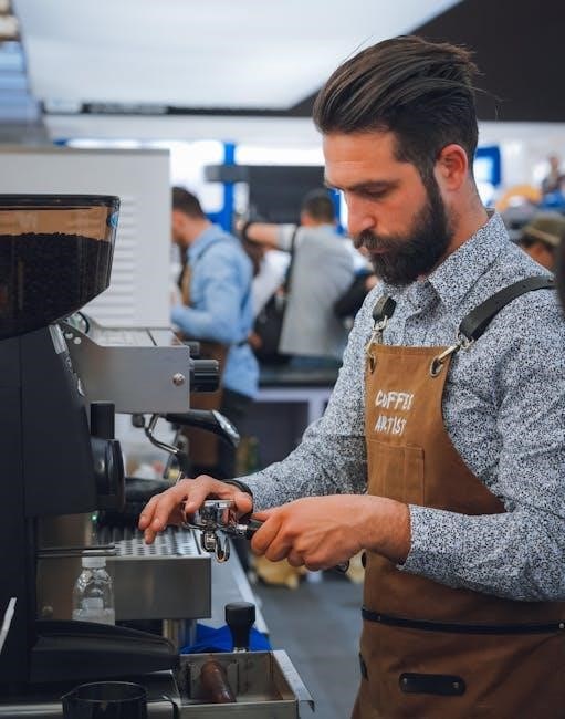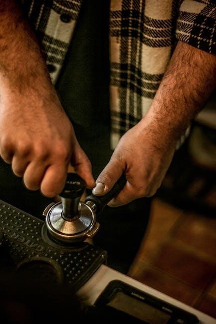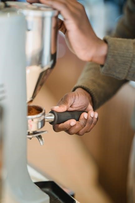 Experiment with grind size and tamping pressure to achieve the desired espresso quality. Refer to the manual’s troubleshooting section for detailed guidance.